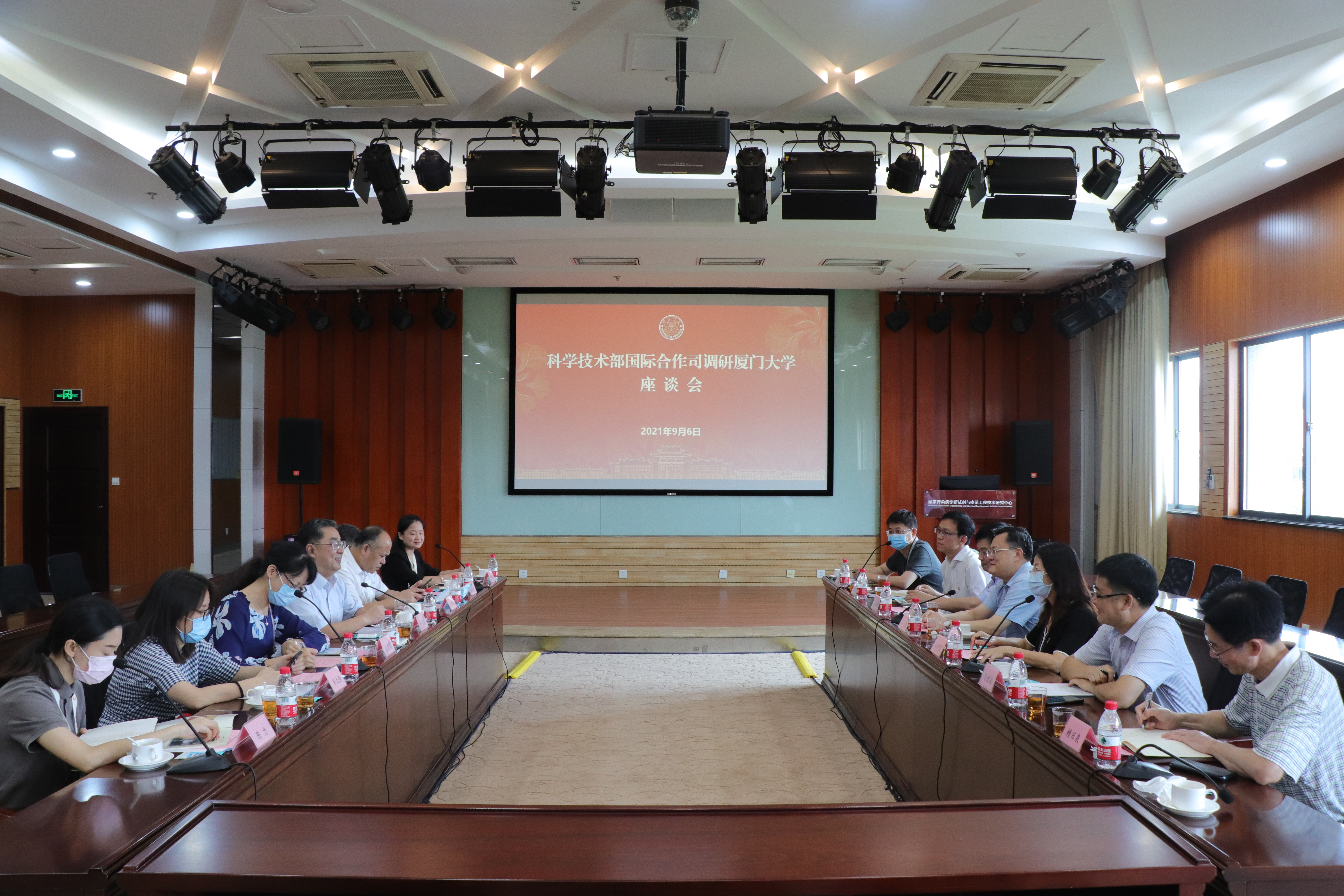科技部国际合作司国际合作处处长杨雪梅、干部李文静,厦门市科技局党组成员、副局长曹伟民、科技合作与成果转化处处长、一级调研员吴志伟、副处长张锦榕、干部陈力,厦门大学翔安校区管委会副主任黄宇霞、校办公室副主任马进龙、科学技术处副处长(主持工作)纪荣嵘、副处长赖日泉、公共卫生学院党委副书记王晟等参加座谈。