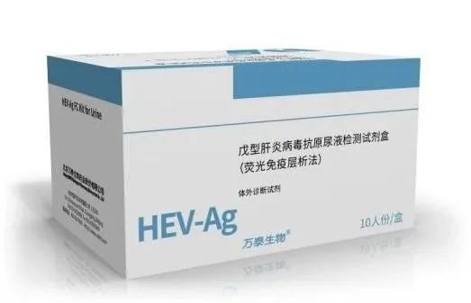 实验室、中国食品药品检定研究院和万泰生物以尿液中pORF2抗原为靶标,联合研制了全球首个HEV抗原尿液检测试剂盒。临床评估结果显示该试剂对戊型肝炎的检测灵敏度为91.16%(95%CI:86.61%~94.27%),特异性为100.00%(95%CI:99.66%~100.00%),准确度为98.58%(95%CI:97.79%~99.09%)。法国图卢兹大学医院评估该试剂对戊型肝炎的检测灵敏度为97.65%,特异性为100%。